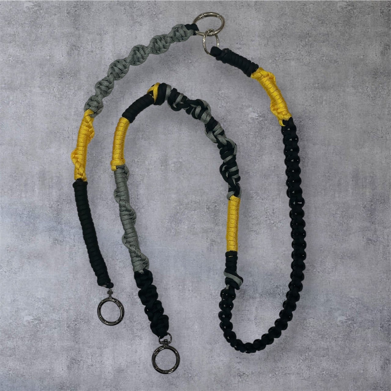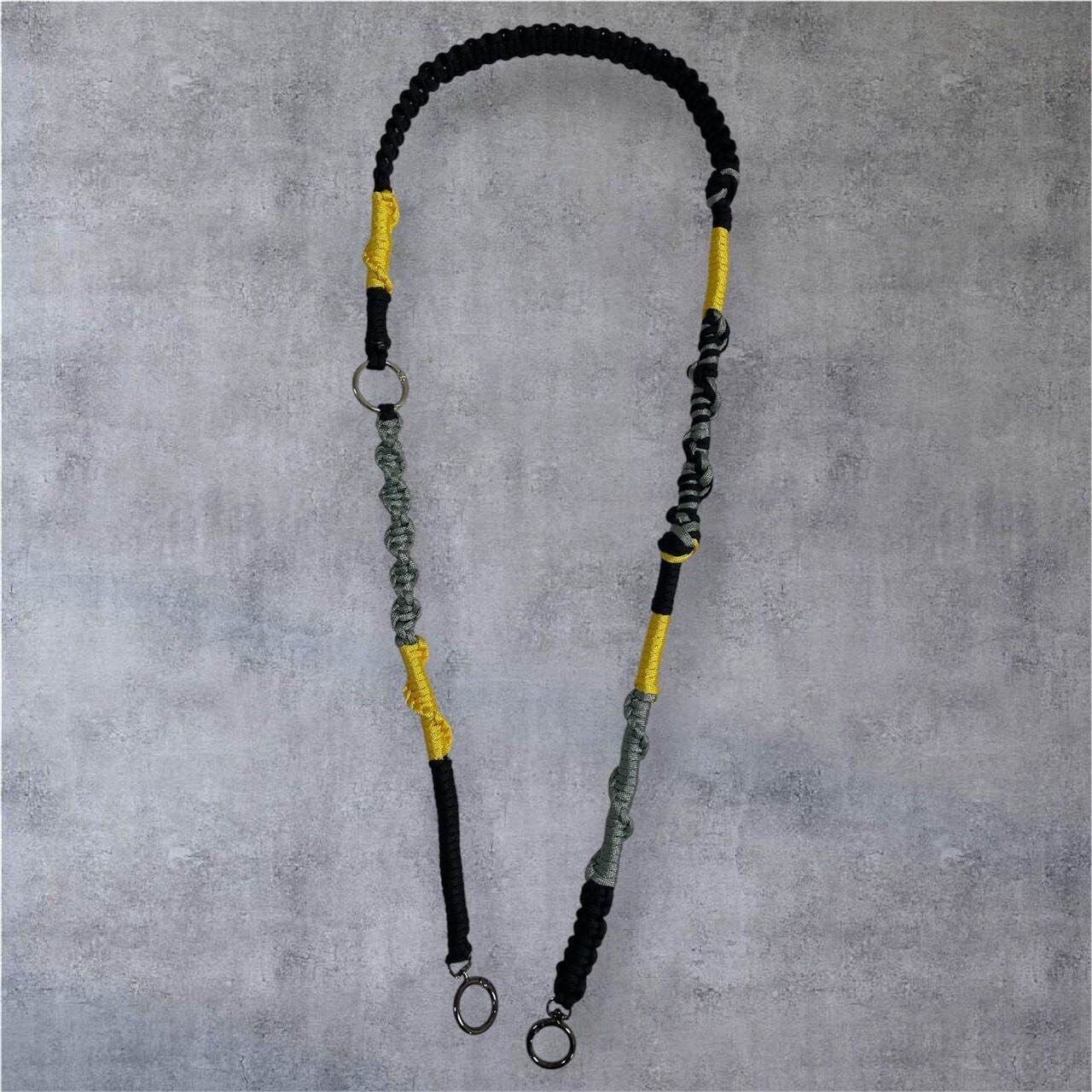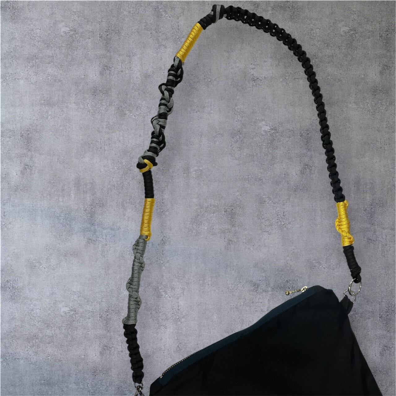 イエローが映えるようにブラックとグレーで合わせたスマホショルダーです。