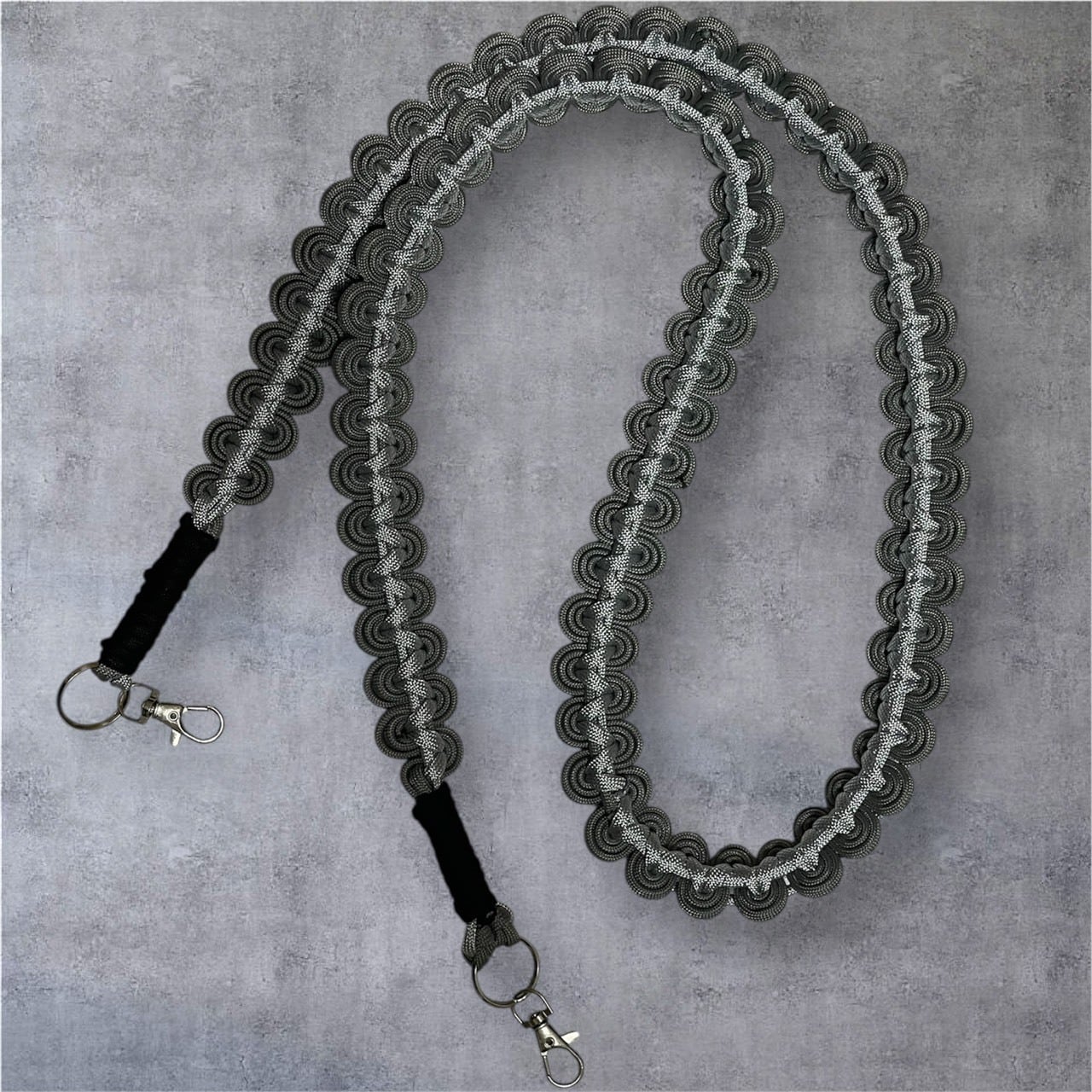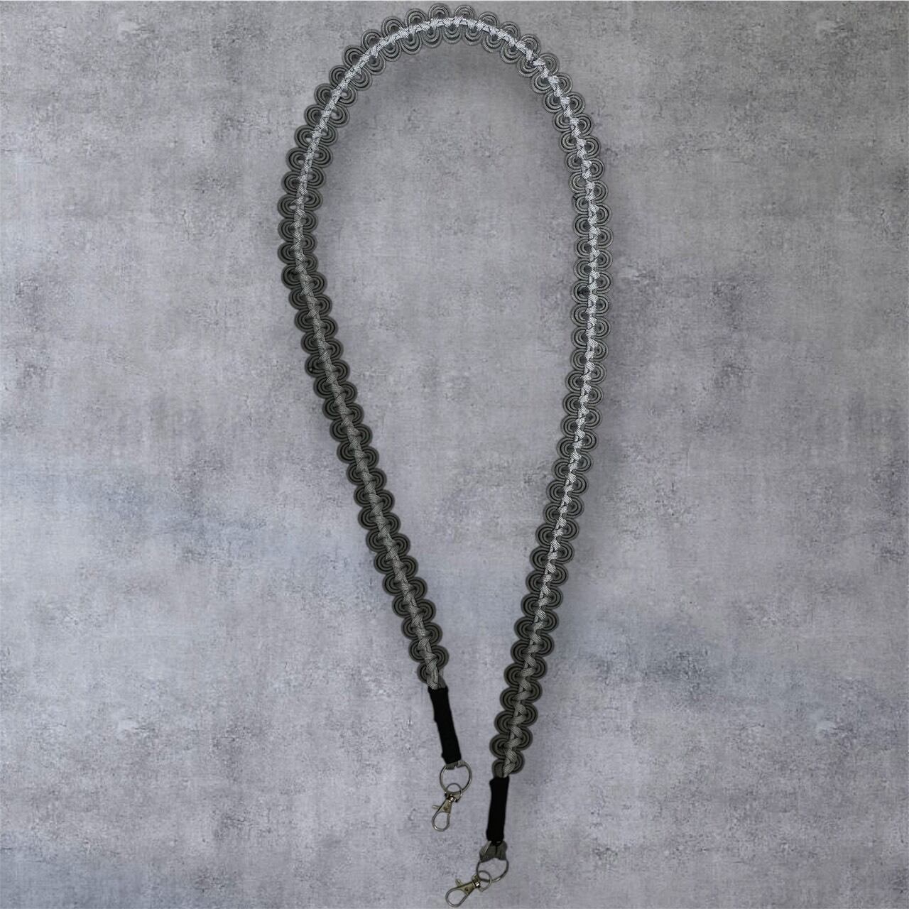 落ち着きのある色味のグレーをベースに3種類の色を使用したスマホショルダーです。
