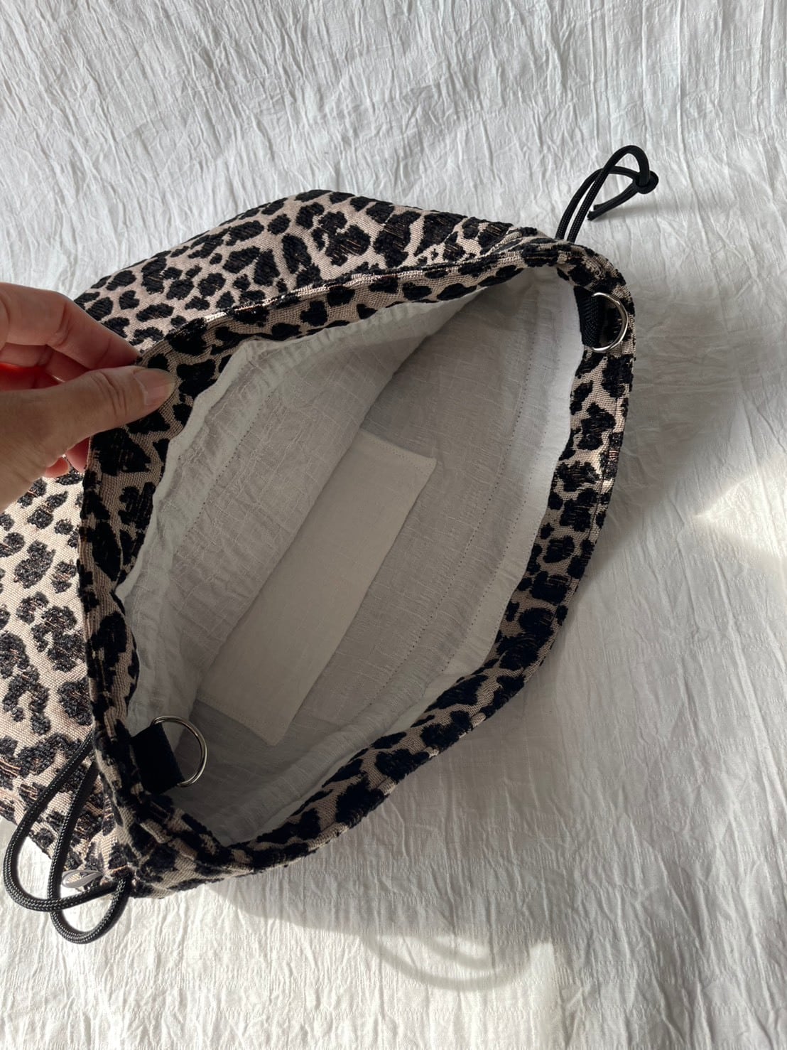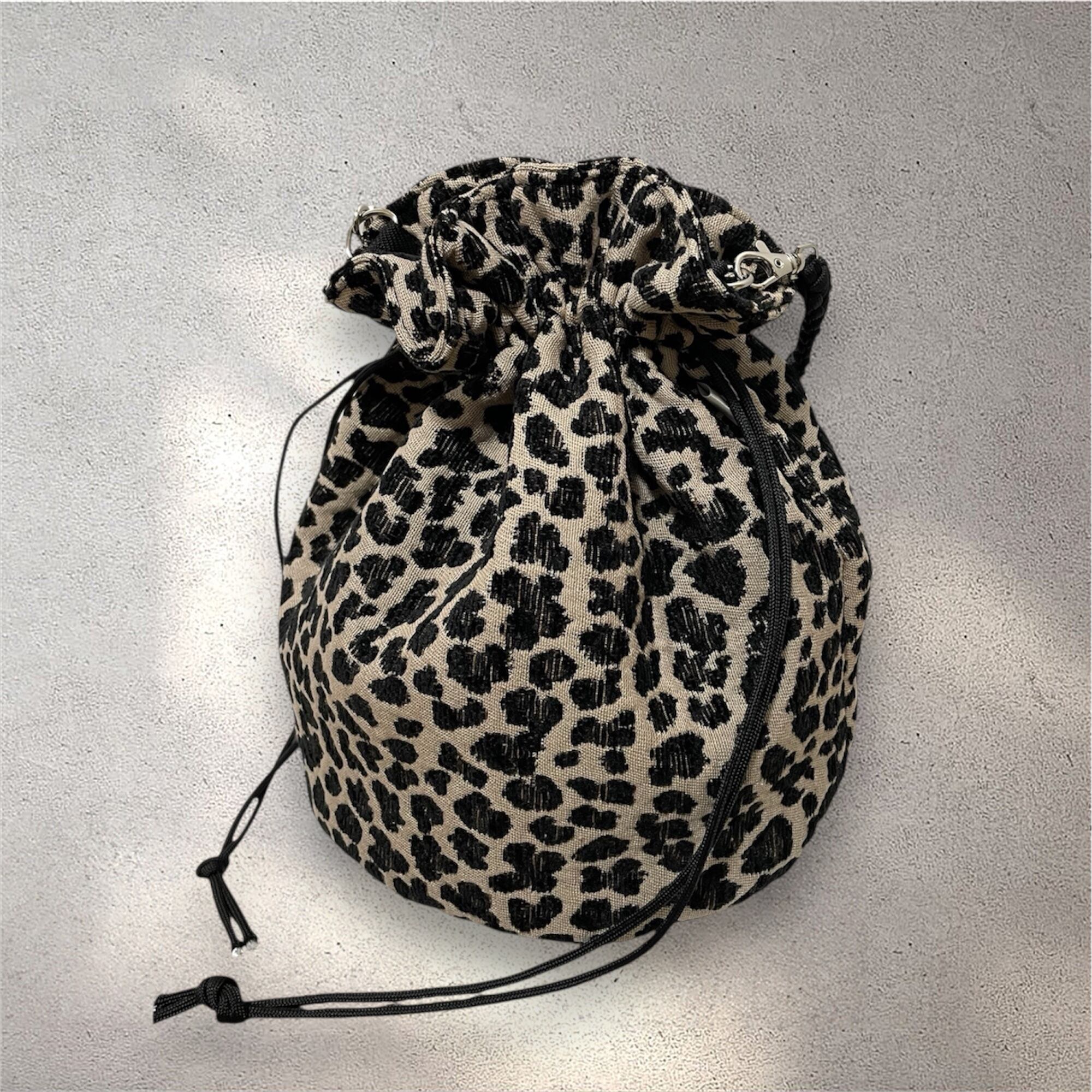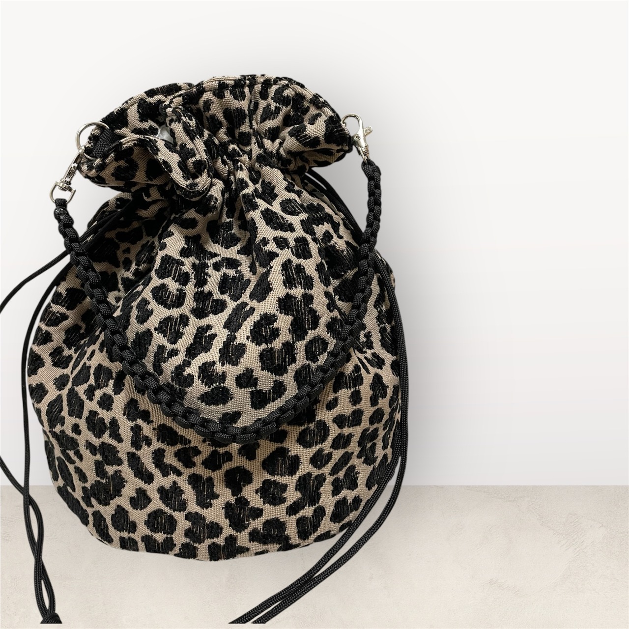 定番で人気のある豹柄の巾着バッグです。
